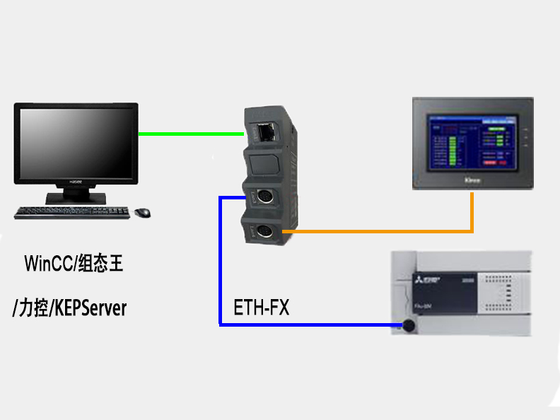 通過ETH-FX,可將三菱FX系列PLC,如:型號FX1N/1S/2N/3S/3G/3GC/3U/3UC 轉(zhuǎn)成以太網(wǎng),直接與上位機通訊。